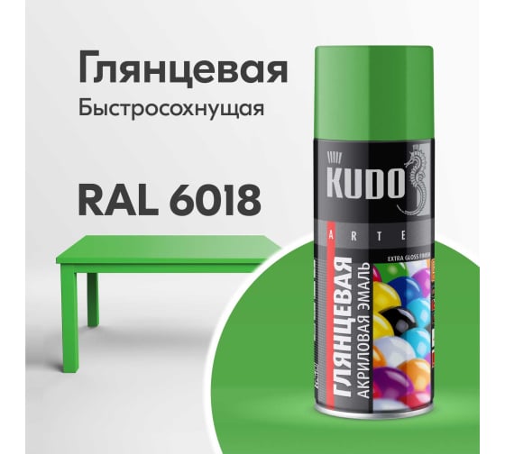 Տիպ` Սփրեյ ներկ շուտ չորացող_x000D_ Նախատեսված է` Ներքին և արտաքին աշխատանքների համար_x000D_ Ծավալ` 0.52լ_x000D_ Գույն` Բաց կանաչ RAL 6018_x000D_ Արտադրող` KUDO